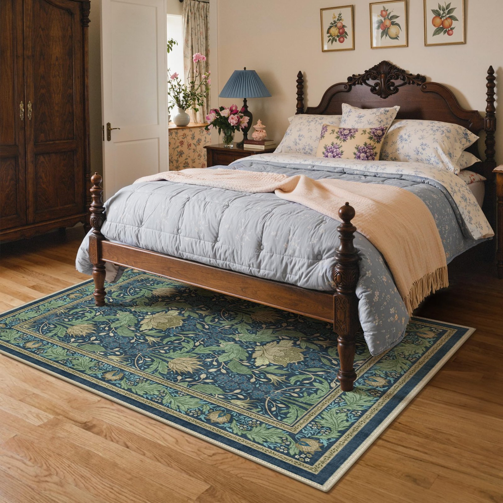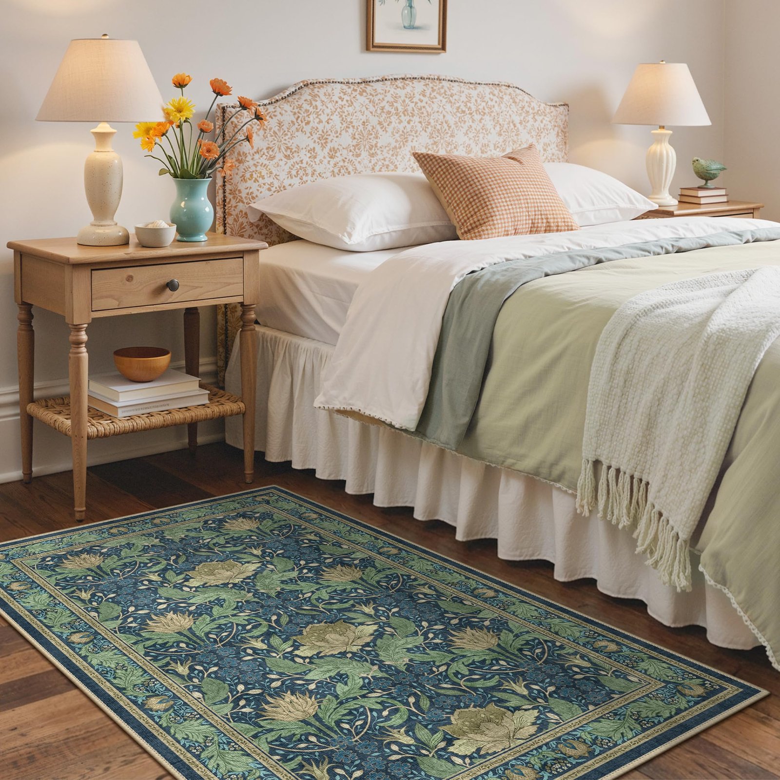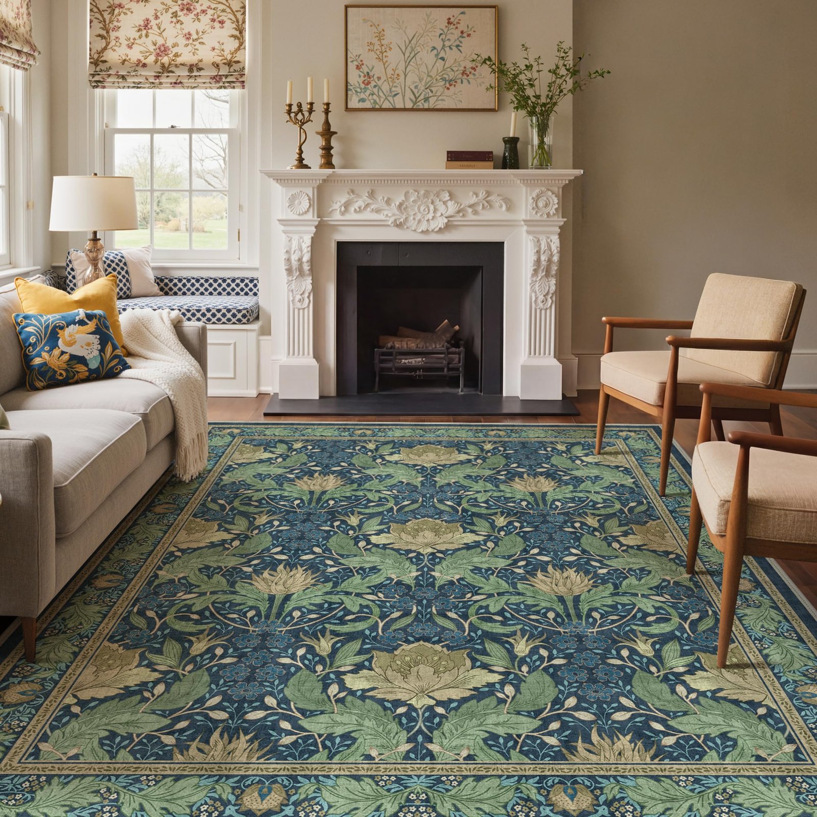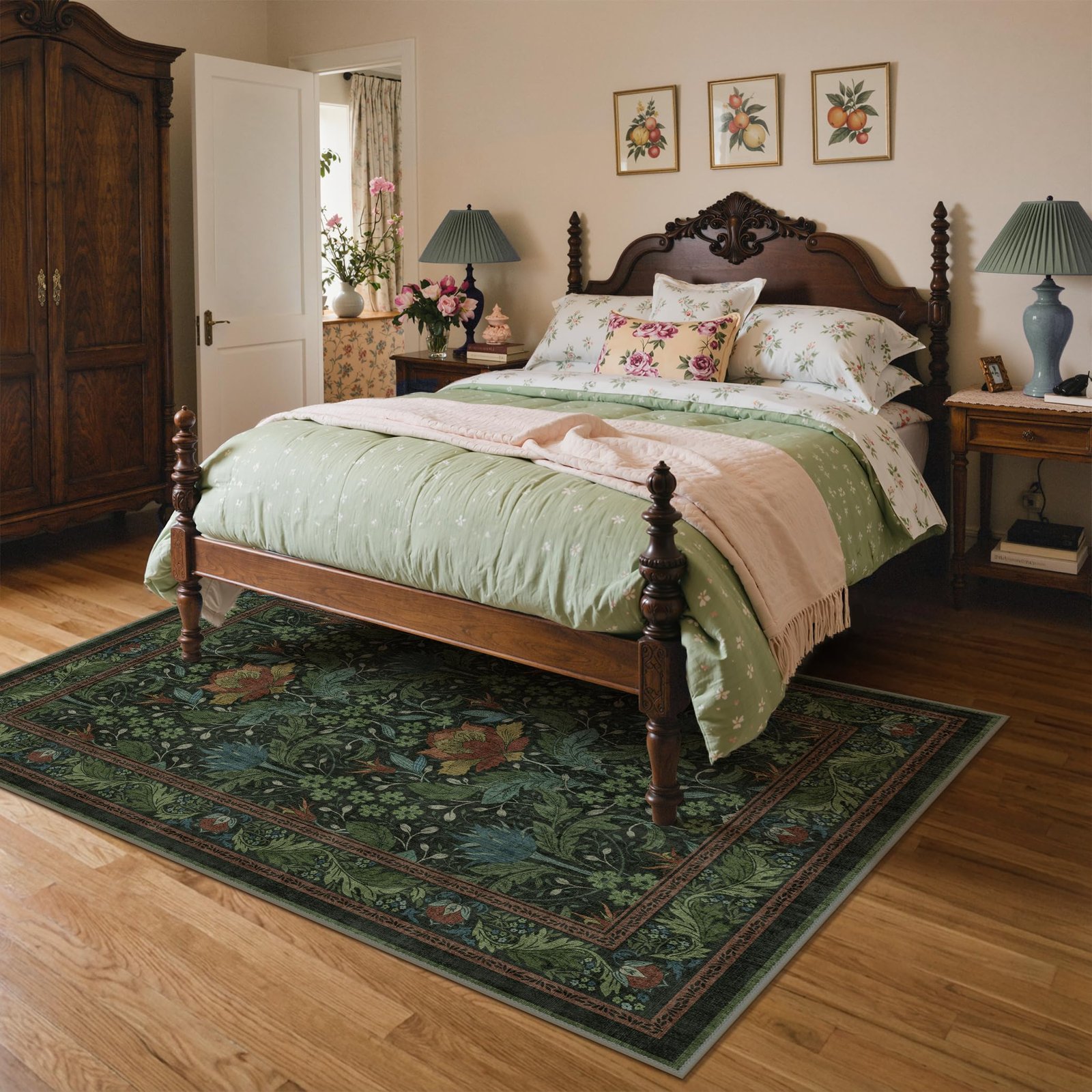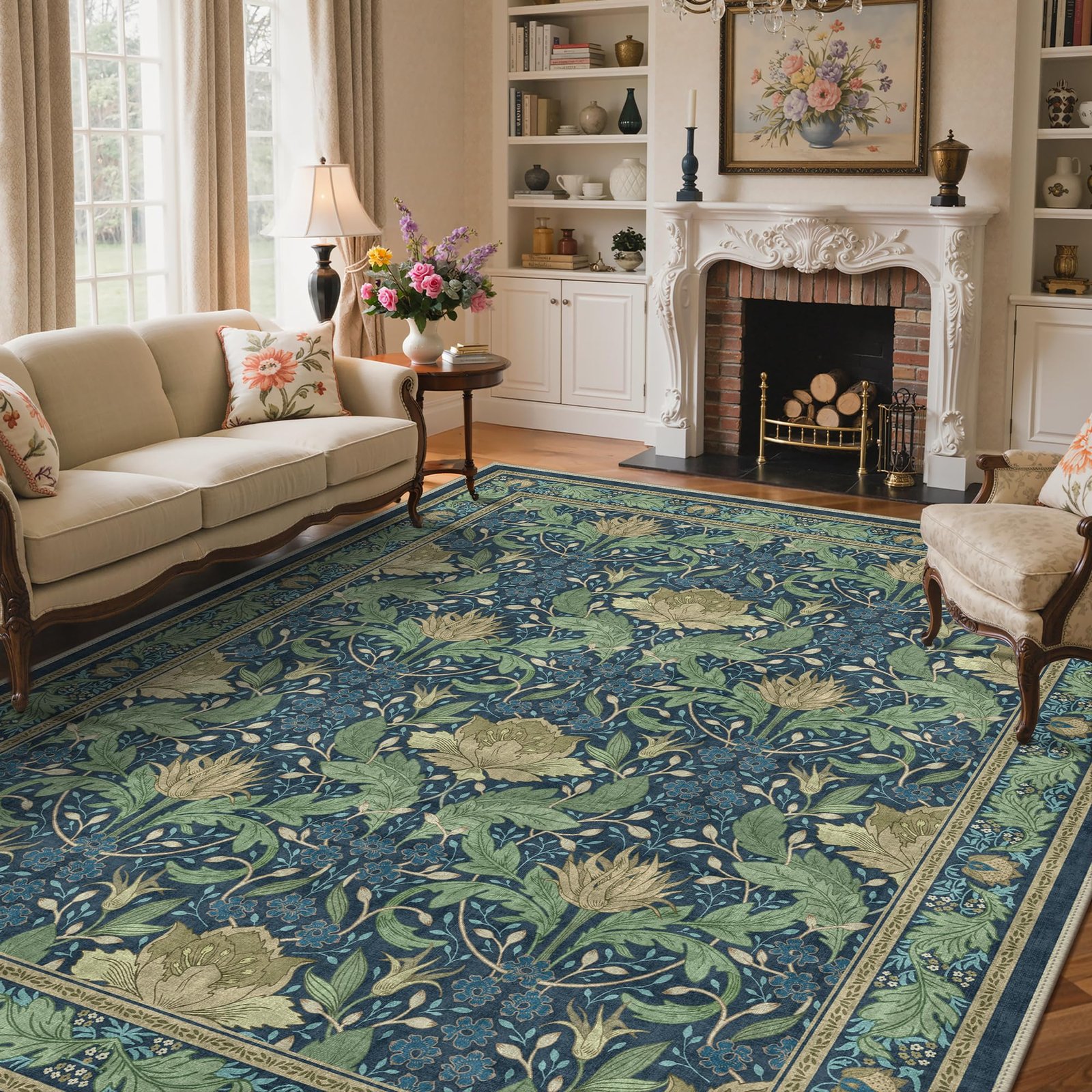 · Vintage Floral Design: Inspired by classic European botanical tapestries, the intricate symmetrical floral design creates a sense of harmony and visual rhythm. Each detail—from blooming petals to curling vines—adds sophistication without overwhelming the space. Available in refined colorways to suit both vintage charm and contemporary elegance, this rug transforms your home into a curated space