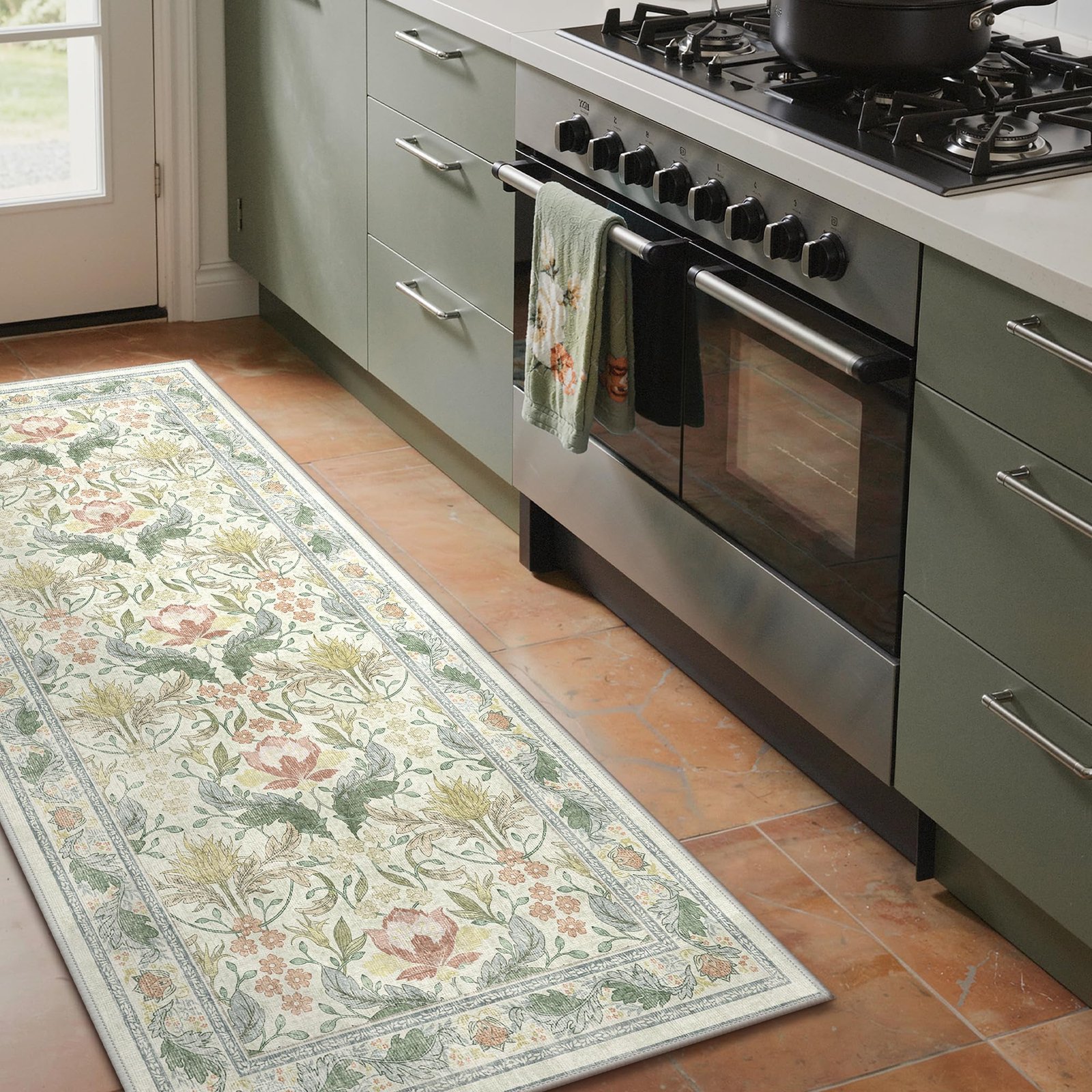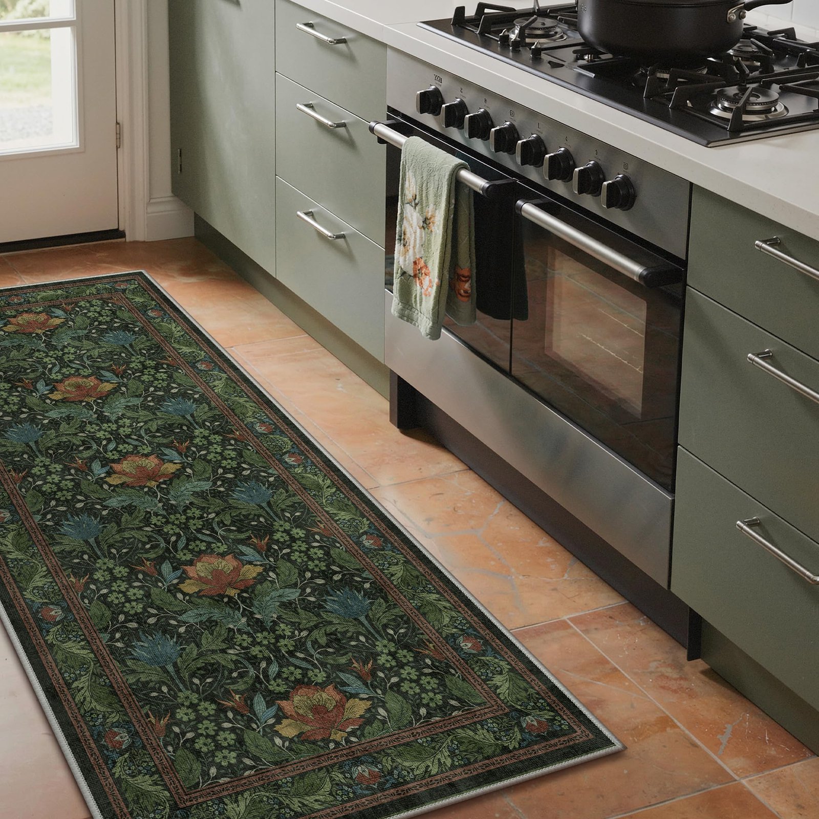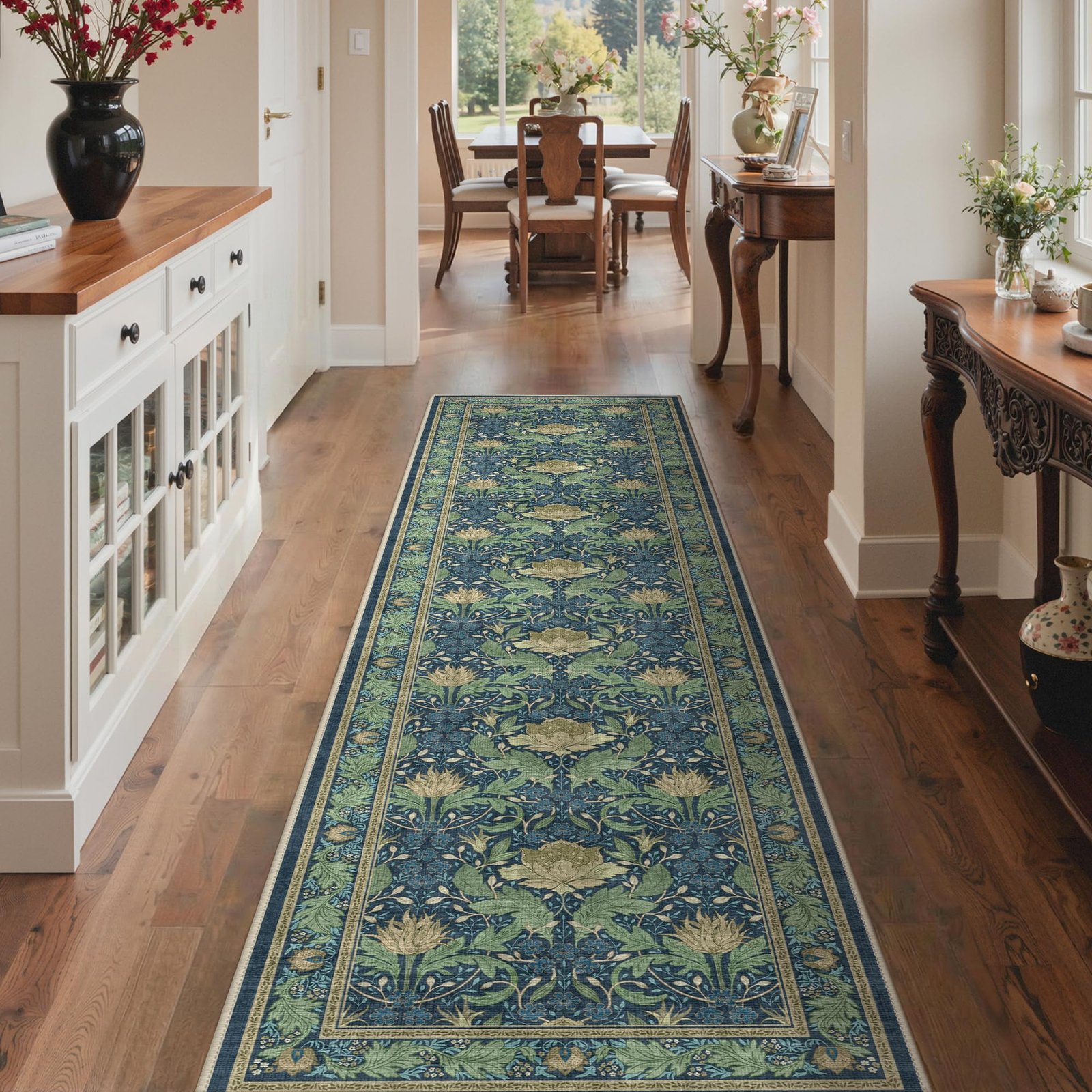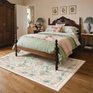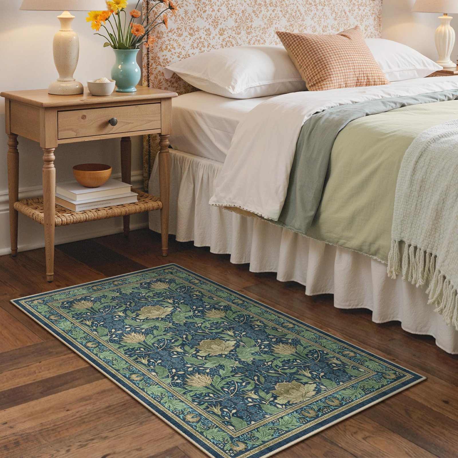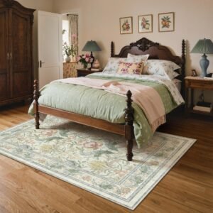 · Vintage Floral Design: Inspired by classic European botanical tapestries, the intricate symmetrical floral design creates a sense of harmony and visual rhythm. Each detail—from blooming petals to curling vines—adds sophistication without overwhelming the space. Available in refined colorways to suit both vintage charm and contemporary elegance, this rug transforms your home into a curated space