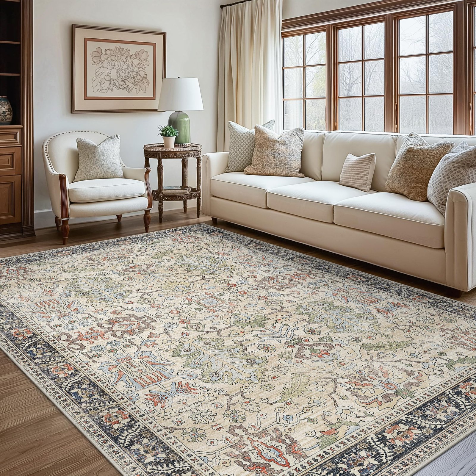 · [Built to Last]: Our area rug is crafted from a blend of chenille, a middle layer, and a non-slip backing. The backing provides excellent friction and helps keep the rug in place. Every design detail prioritizes longevity, ensuring that the rug can withstand the test of time and the wear of daily foot traffic. Reinforced edges help prevent fraying, allowing the rug to retain its appearance and texture even after years of use.