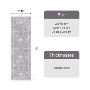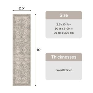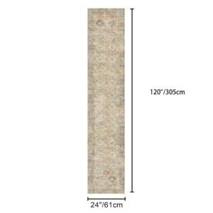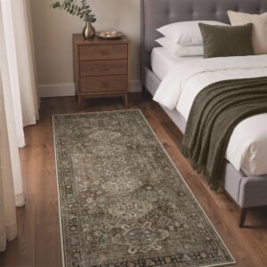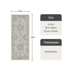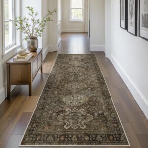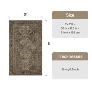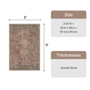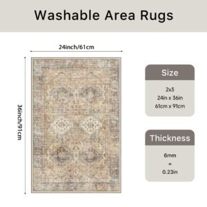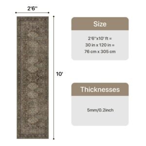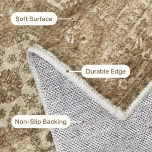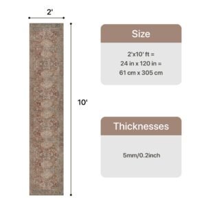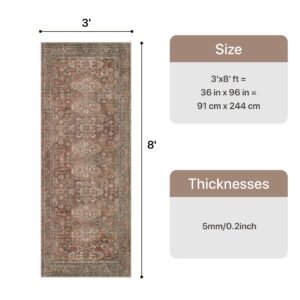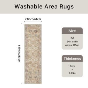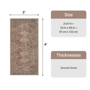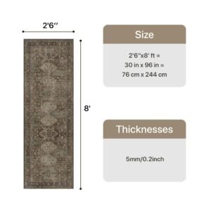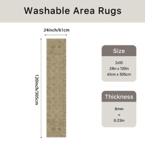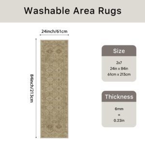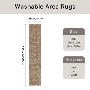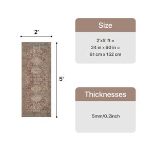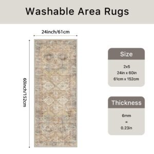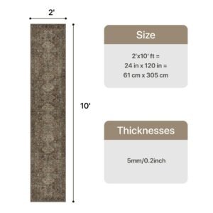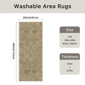DAIMYO HILLS Washable Runner Rug 2×5, Non Slip Vintage Hallway Runner, Ultra Thin Low Pile Washable Carpet for Kitchen Entryway Bedroom, Brown