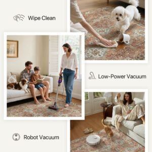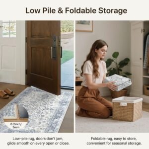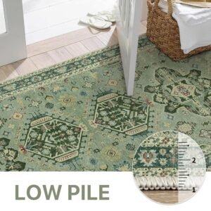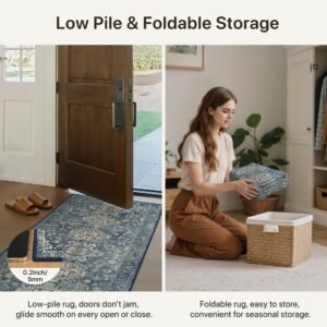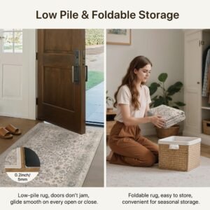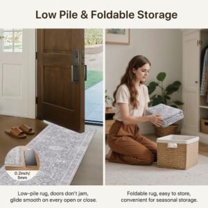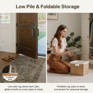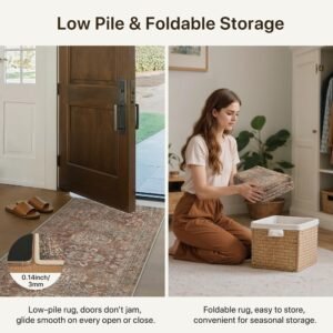 · [Low-Pile & Easy Care]: The thin, low pile vintage rug stays perfectly flat (no bunching!) for seamless door clearance and effortless cleaning. Pet hair and dirt brush right off, while the tight weave resists stains – just spot clean as needed.
