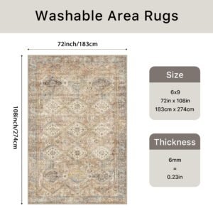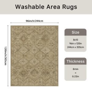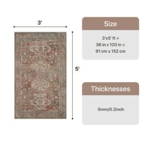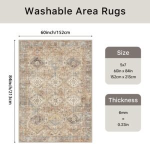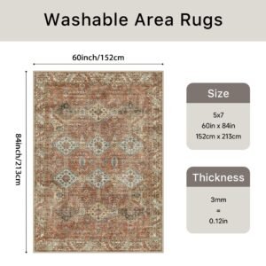 · [True-to-Scale Vintage]: Featuring a vintage-inspired pattern with timeless hues and subtle weathered details, this distressed washable rug blends seamlessly into any decor. Photos may vary due to angles or screens—measure your space and check our size chart for the perfect fit.