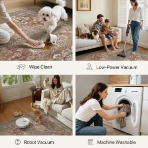 · [Durable & Fade-Resistant]: Crafted from high-quality synthetic fibers, our washable rug resists wear, fading, and matting even in high-traffic areas. Its sturdy build withstands daily use, making it a lasting choice for homes with kids, pets, or frequent activity.