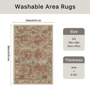 · [Non-Slip Safety]: Designed with a non-woven backing and anti-skid plastic dots, this 2×3 rug runner stays firmly in place—no slipping or sliding. Perfect for smooth floors (tile, hardwood, etc.) and high-traffic areas like entryways, kitchens, and hallways.