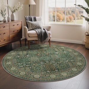 DAIMYO HILLS Washable Rugs 8x10-Machine Washable Rug Lightweight Low Pile, Vintage Floral Rug Non-Shedding Distressed Throw Carpet for Living Room Bedroom Office, Dark Green/Multi
